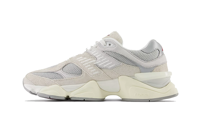 La 9060 est une version revisitée du style raffiné et du design innovant de la série 99X classique. La 9060 réinterprète les éléments familiers des 99X avec un sens de la déformation inspiré de l'esthétique tech futuriste ostentatoire et décomplexée des Y2K. Les barres oscillantes, reprises de la 990, sont élargies et utilisées sur l'ensemble de l'empeigne pour donner une impression de mouvement visible, tandis que les lignes ondulées et les proportions réduites sur une semelle intermédiaire sculptée mettent un accent exagéré sur les plateformes d'amorti habituelles d'ABZORB et de SBS.