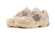 Las Respuesta CL Bad Bunny Wonder blancas de Adidas presenta un tallo en malla beige, coronado por paneles irregulares en cuero y gamuza. Las tres bandas en el panel traen un ligero toque de contraste gracias a los contornos negros otorgados al Voista que los acompaña.