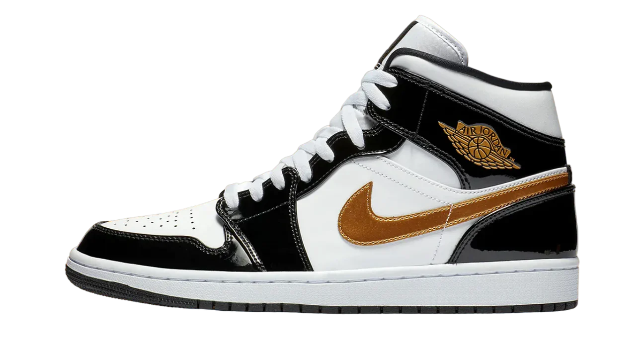 Air Jordan 1 Mid Patent Black White Gold